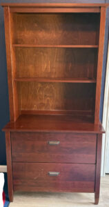 This elegant cabinent is a great addition to your office or den, allows you to easy show off some of your “stuff” with ample storage in the two drawers. The dimentions above outline the larger of the measurements.