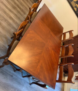 Gently used and well cared for, it shows the kind of character that comes from shared meals and well-lived moments, not wear. Whether it’s a quiet weeknight dinner or a holiday spread, this table knows how to rise to the occasion.