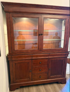 This Hooker Furniture branded china cabinet doesn’t just store your pieces—it puts them on display. Crafted in a rich, warm wood tone, it brings timeless elegance and a sense of occasion to any dining room or living space.